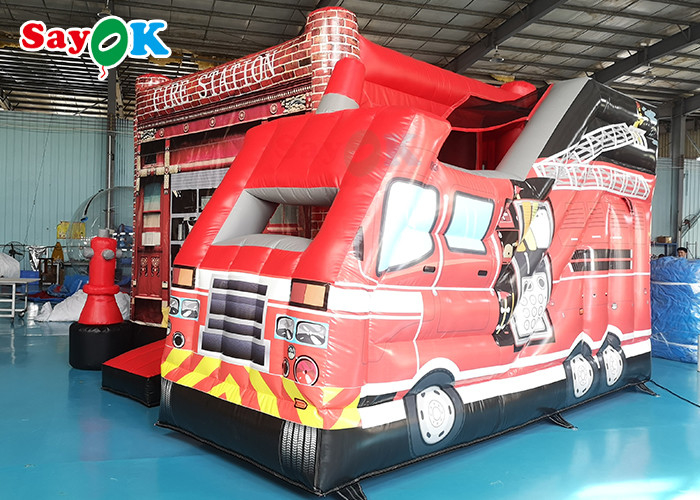 बच्चों के मनोरंजन पार्क के लिए फायर ट्रक थीम्ड इन्फ्लेटेबल बाउंसिंग कैसल